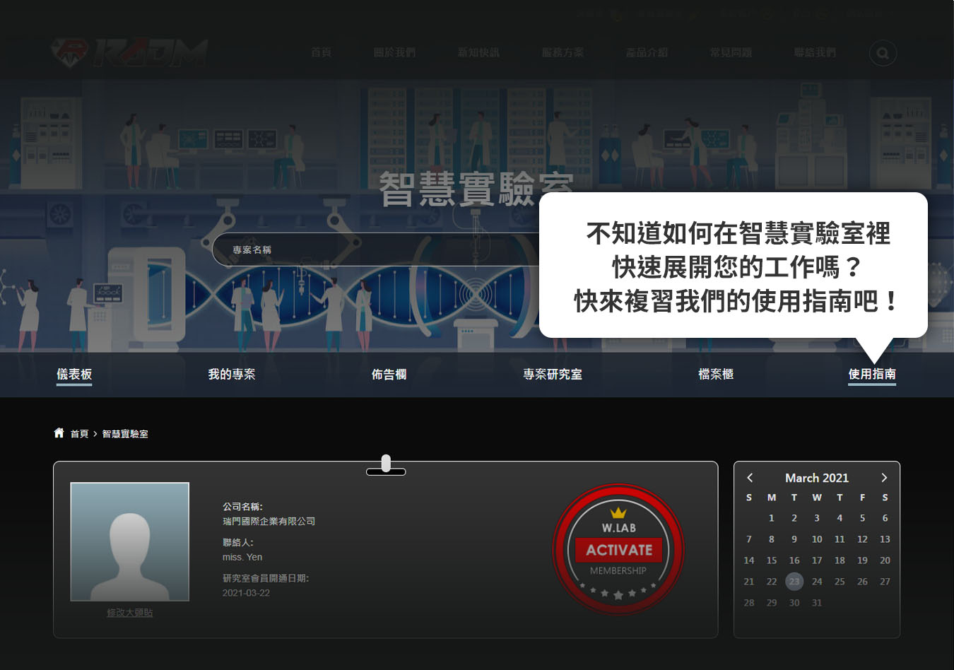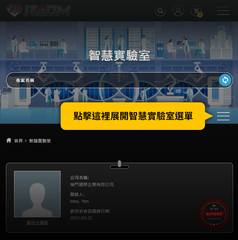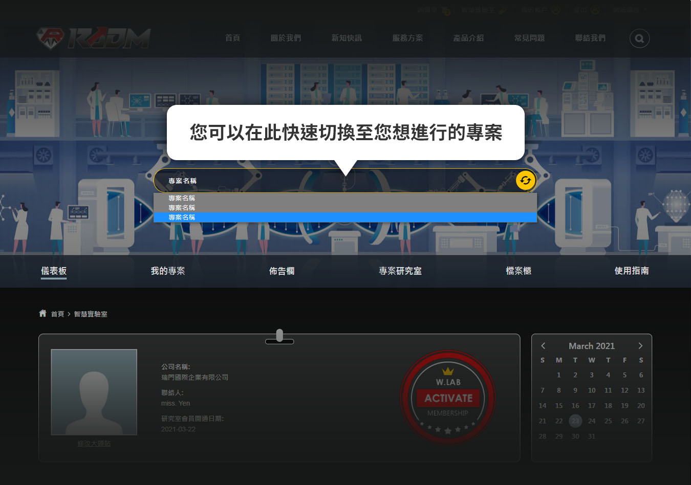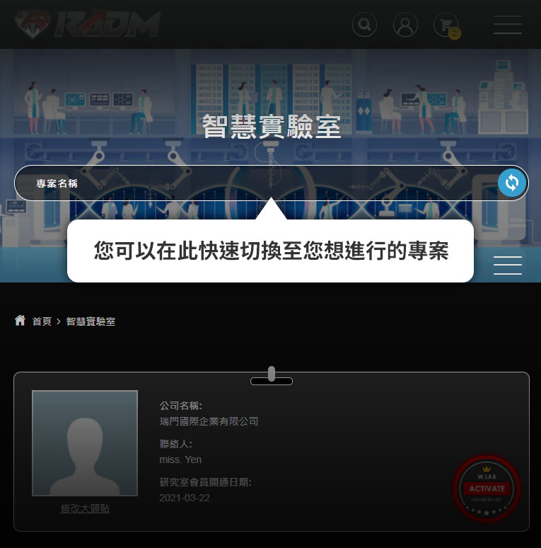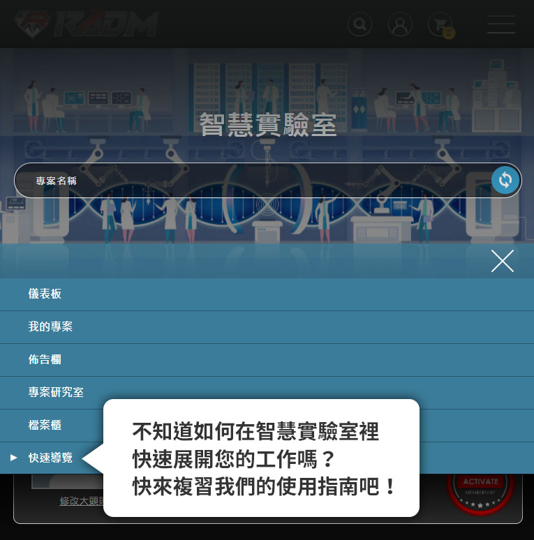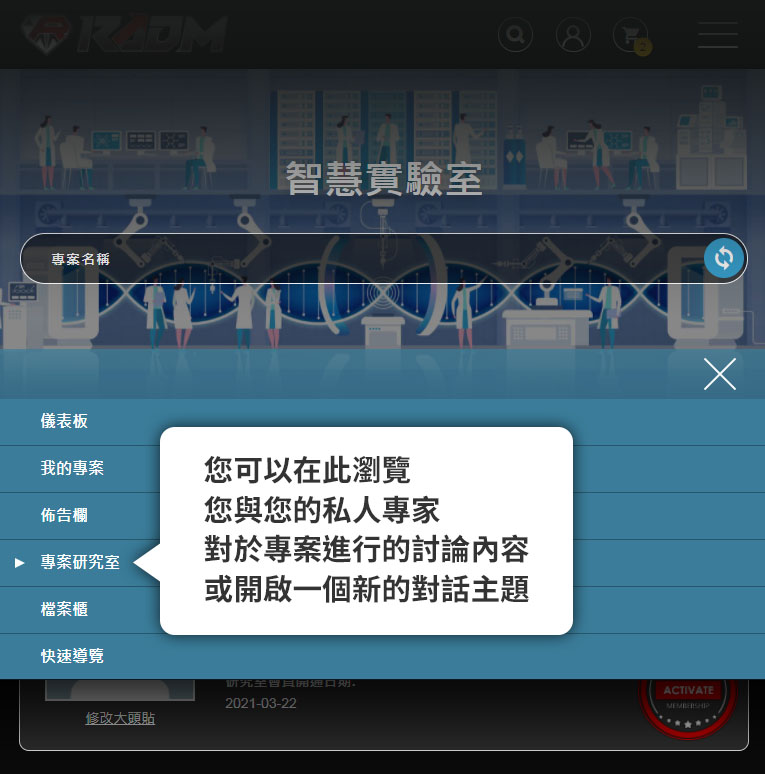 啟動我們的實驗室功能,您將可以透過網路,使用我們的獨家專案管理系統,並且擁有專屬的專家加入您的團隊,來一起完成您的全球商業計畫。
